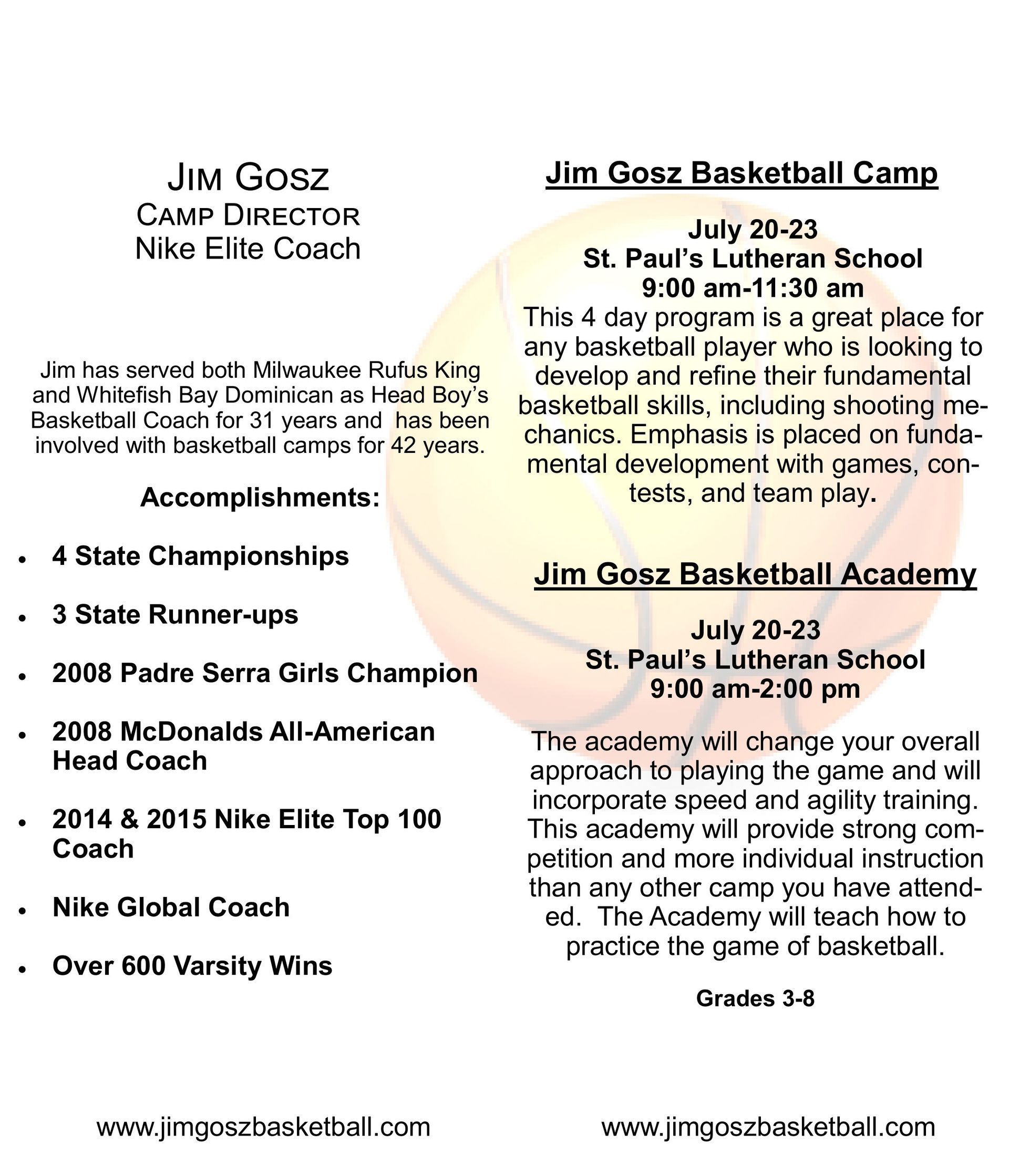 Interested in athletic camps, or events at area Catholic High Schools or organizations within the community? Check out these upcoming camps and events: